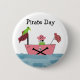 Ett djupt blått hav med en rosa pirat frakt och en kvinnlig kapten med sin pålitliga grönt parrott.