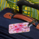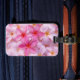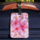 Söt rosa plumeria-bagagemärke. Affärskortets kortplats på baksidan.