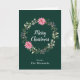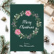 Den här roligten och julkortet för högvattenfärger kan vara personlig med namn eller titel. Den har en vattenfärgad julkrans med rosa poinsettias och holly på mörk grönt bakgrund. Texten kombinerar handskript och modern serif typsnitt för ett elegant och sofistikerat utseende.