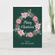 Den här roligten och julkortet för högvattenfärger kan vara personlig med namn eller titel. Den har en vattenfärgad julkrans med rosa poinsettias och holly på mörk grönt bakgrund. Texten kombinerar handskript och modern serif typsnitt för ett elegant och sofistikerat utseende.