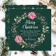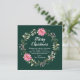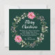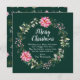 Den här roligten och det här julkortet för högvattenfärger kan vara personlig med din familj namn. Den har en andedräkt med rosa poinsettias och holly på mörk grönt bakgrund. Texten kombinerar handskript och serif typsnitt för en elegant och ett sofistikerat utseende.