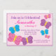 Rosa Polka Dot Butterfly Födelsedagsfest Inbjudan