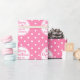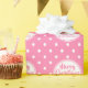 Vita fläckar på rosa bakgrund. "God jul" hälsning och vem det kommer från kan ändras.