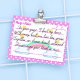 Tittar för ett sött och kreativ sätt att göra dina anteckningar mer glada och roligtar? Om så är fallet måste du checka ut det nya med ett vitt ram som har en skalad kant och skuggeffekt. Inuti ram ger gult söta stjärnor och moln med regnbågar en känsla av lätthet och lugn i dina anteckningar. Och det finns mer! Linjerna att skriva dina anteckningar är rosa, samt det utrymme du behöver för att ange datum och namn, som kan anpassas. Med en rosa bakgrund med vitt polka dots är perfekten för att slå ihop påminnelser, att göra-listor, mobila nummer eller till och med ett romantiskt budskap för den speciella personen. Så varför behålla med tråkiga och tydliga anteckningar när man kan ha en så vacker och charmerande post-it? Välj din nu och gör dina anteckningar mer färgstarka och roligt!