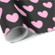 Rosa-polka-hjärtan på svart bomull presentpapper