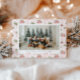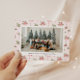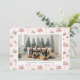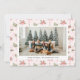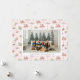 Helgdag-kort med söt pastel-rosa och grönt tapet-bakgrund med ett familjefoto parat med ett Julhälsningar och ditt namn och år i ett sans serif-teckensnitt.