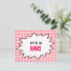 En födelsedagsinbjudan inspirerad av popkonst med ett rosa färgschema. Personifiera framsidan och baksidan.