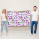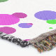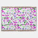 Rosa prickar flyter i ett kastat konfettitema med lysande rosa, lila, blå och kompletterande gröna färger som alla faller från firandet.