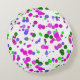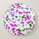 Rosa prickar flyter i ett kastat konfettitema med lysande rosa, lila, blå och kompletterande gröna färger som alla faller från firandet.
