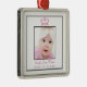 Rosa och vita silver-trimfoto ram rosa prinsessan krona flicka födelsemärkelse första julprydnad.