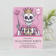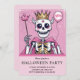 Lägg till ett glam till ditt skämt firande med den här beundransvärda Rosan Princess Skeleton Halloween fest bjudande! Med ett sött krökt skelett som håller ett ballong och magiskt trollspö är denna pastelldesign rosa perfekt för barn’ party, schyst Halloween-evenemang eller någon som kärlek en roligt vrider på spookysäsongen. Fullständigt anpassade med din evenemangsinformation är idealiskt för födelsedagar, kostume party eller trick-or-treat-sammankomster. Gör firande söt och skämt i stil!