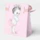 Bedårande rosa prinsessa presentlådor för baby shower. Du kan lägga till text, ändra färgen på bandet och lägga till en bakgrundsfärg efter eget val till denna söta rosa prinsessa presentlåda för baby shower.