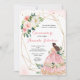 Rosa prinsessa Quinceañera-inbjudan med elegant guld geometrisk blomma