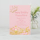 ROSA OCH GULD TRYCESS BIRTHDAY INVITATION MED CARRIAGE DESIGN, GULD GLITTER DETALJER.