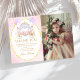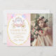 Rosa prinsessvagn födelsedagsfoto tack kort