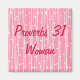 Rosa söt Proverbs 31-kvinnlig kylskåpsmagnet, den här designen har en rosa och vit bakgrund med "Proverbs 31 Woman" skriven med rosa kursiv stil. Beställ idag!