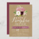 Förälska dig i dessa rustika eleganta höstinbjudningar till bebisfest. Designen har en rosa akvarellpumpa prydd med burgunderröda och elfenbensvita blommor och grön lövverk på en kraftbakgrund. "En liten pumpa är på väg" visas längst upp i chic kalligrafiskrift. Personalisera med din bebisfest och presentregisterdetaljer nedan i vit text. Kortens baksida är enfärgat burgunderröd marsala.
