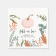 Rustik och vismisk rosa pumpa papper napkin för babydusch med illustration av fallbotaniska ämnen. I texten står det "falla i kärlek". Perfekt för en flickdusch i fallet.