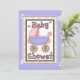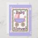 Rosor och lilor för flicka; Barnvagn, hjärtor, polka dots och randar, baby showerinbjudningar.