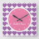 Rosa & purpurfärgade hjärtatryckflicka sovrum fyrkantig klocka