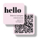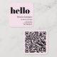 affärskort för rosa i anpassade, med HEJ, typografi och namn, yrke, webbplats och social-medier. På baksidan finns en skannerbar QR-kod. Om du vill skapa en ny QR-kod på designen som länkar till din egen webbplats klickar du på "Anpassa den här mallen" Lägg till din URL-medieferens adress eller social i det angivna området och en QR-kod skapas bara för dig.