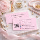 En rosa färg. Anpassa och lägg till ditt namn och information. Lägg till URL/länk för webbplatsen till QR-koden. Facebook- och Instagram-ikoner.