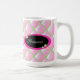 Söt rosa och grönt med utjämnad diamant mönster. 3d-diamanter. Ord "prinsessan" accentuerar båda sidor av mugg.