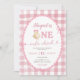 Rosa Quirky One Cute Chic Birthday bjudande, Rosa Coquette Bow Birthday Inbjudan, Editable Preppy Little Chicken First Birthday