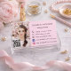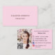 En rosa färg. Anpassa och lägg till ditt namn, din bild och information. Lägg till URL/länk för webbplatsen till QR-koden. Facebook- och Instagram-ikoner.