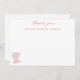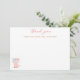 Ett platt tackkort för söt med en illustration av rosa regnstövlar fyllda med blommor. "Tack" är rubriken i rosa moderna kalligrafteckensnitt. Anpassa till framtiden, fru namn. Gör en underbar möhippa.