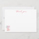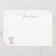 Ett platt tackkort för söt med en illustration av rosa regnstövlar fyllda med blommor. "Tack" är rubriken i rosa moderna kalligrafteckensnitt.