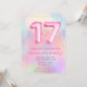 Rosa Rainbow 17:e födelsedag: Flicka Rosa Glitter födelsedagsfest inbjudan för en 17-årig flicka med modernt skrivmanus och roligt-fotballonger.