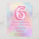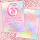 Rosa Rainbow 6e Birthday Bjud in Girly Rosa Glitter födelsedagsfest inbjudan för en 6-årig flicka med moderna skript- och roligt-fotballonger.