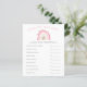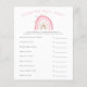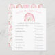 Boho rainbow-temafältet Flickans babyduschkort med illustrationer av pastellernas rosa med stjärnor. Texterna kan redigeras. Perfekt att spela under duschen. Den räknar upp det viktigaste baby och ber gästerna att gissa det prisa. Den som gissar prisa vinner närmast!