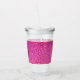 Rosa Rainbow Unicorn Glitter Sparkles Girls Anpassningsbar Acrylic TumblerGanska vit ansikte på framsidan av tumlare och hon har pastellartat regnbåge och blommor. Bakgrunden är designad med rosa faux glitter-gnistor runt mugg. Personlig med namn i svart kalligrafi-skript med text på framsidan av lodrät till enhörnet.