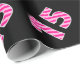 Den här roligten som omsluter papper design har numret "15" som har en mörk rosa och ljus rosa stripe mönster, på en svart färgad. Att packa pappert som detta kan användas när man slår in presenter till någon som firar sin femtonde födelsedag, till ett par som firar sin femtonde bröllop-årsdag, eller till att fira ytterligare femtonde händelse eller milstolpe. [~Z0000379]