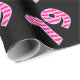 Den här roligten som omsluter papper design har nummer "79" med ett ljust rosa och mörk rosa stripe mönster, på svart färgad. Papper som denna kan användas när man slår in gåvor eller presenter för att fira någons 79-årsdag, ett pars 79-årsdag bröllop eller något annat 79-årsjubileum eller milstolpe. [~Z0000379]