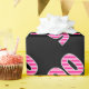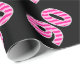 Den här roligten som omsluter papper design har numret 90 med en ljus rosa och mörk rosa stripe mönster, på en svart färgad. Papper som denna kan användas när man slår in gåvor eller presenter för att fira någons 90:e födelsedag, ett pars 90:e bröllop-årsdag eller någon annan nittontiohändelse eller milstolpe. [~Z0000379]