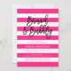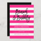 Chic Möhippa Brunch-inbjudan med ord "Brunch & Bubly" i trendigets svarta penselskript mot bakgrund av rosa och vitt rand. Kortet har en motsvarande svart baksida. Kolla in andra matchande objekt här https://www.zazzle.com/collections/119250194970828530?rf=238364477188679314 Anpassa den genom att ersätta platshållartexten. Om du vill ha fler alternativ som att ändra teckensnittet och det är storlekt/färg eller mellanrummet mellan brev klickar du på knappen "Anpassa". *Observera att Zazzle Watermark som visas i zoomförhandsvisningen INTE visas på den färdiga tryckta produkten. © Rosewood and Citrus