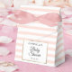 Med en söt rosa och vit randig bakgrund har denna eleganta presentlåda för baby shower en elegant falsk guldprägling som ramar in er showerinformation i chic typografi och ett speciellt tackmeddelande på baksidan. Designad av Thisisnotme©