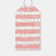 Bröllopet gynnar märkre med en elegant mönster. Med rosa vågrät för färgad i rand och faux guld-konetti i glitter spridd runt. En vit kvadrat med faux guld foil gräns överst, med personlig inuti.