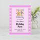 Rosa randig 9-års födelsedagsfest inbjudningar