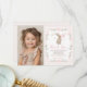 Rosa randig kaninbåge flicka födelsedagsfoto tack kort