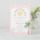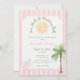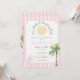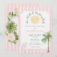 Denna prydda rosa och vita tropiska bröllopsduschdesign, med ett "snigelskal och bröllopsklockor"-tema, har mjuka ränder, palmer och ett vintage-solmotiv för en chic kustnära atmosfär. Perfekt för en sommarfirande, den blandar elegant och lekfull stil, vilket gör din bröllopsdusch varm, stilren och oförglömlig. Skapad av Simply Farmhouse Press.