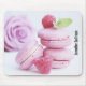 En musmatta med ett utsökt fotografi som visar en torn av rosa makaroner med hallon placerade runt. Det är en underbar gudomlig.