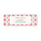 Rosa och röda checkar (gingham) pryder mönster på dessa returetiketter. Säsong-färgerna säger att det är jul. Röda bär och löv ger helgdag under vintern. god jul. Mönster gör ett vackert ram kring ditt namn och adress. Se till att du redigerar exempelposterna namn och adress.