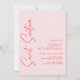 Cute och moderna söta 16 inbjudningar med skriptaccenter. Rött teckensnitt på mjuk rosa bakgrund.