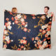 ROSA RED WHITE VÅR BLOMMOR , DEEP BLUE BLOMMIGT FLEECEFILT