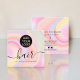 Modern rosa regnbåge enmajsmarmor, affärskort med klistermärken. Lägg till media och logotyp i social.