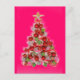 Julgran på natten, ljusa rosor med rött rosett band, rött, rosa och grönt dekorationer och en guld stjärna som skapar Julgran-formen. Fin RETRO 70:S helgdag.
